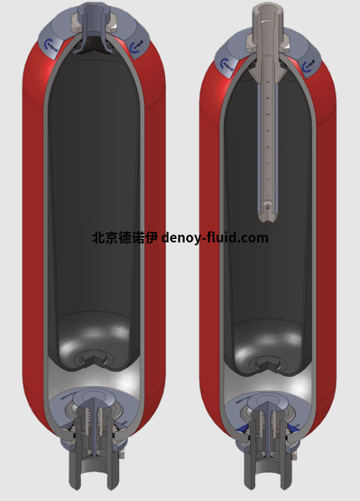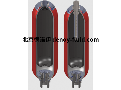 蓄能器通過安裝在容器內(nèi)部的彈性氣囊細(xì)分為氣體側(cè)和流體側(cè)。